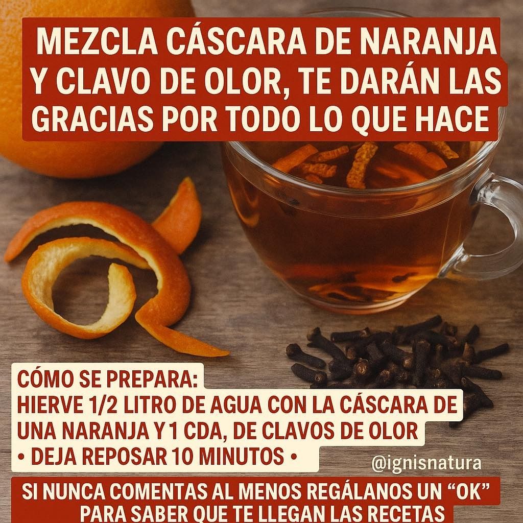 Las cáscaras de naranja están repletas de vitamina C, un nutriente esencial que fortalece nuestro sistema inmunológico. Cuando se combinan con los clavos de olor, conocidos por sus propiedades antibacterianas y antivirales, esta mezcla se convierte en un escudo natural contra resfriados y gripe.