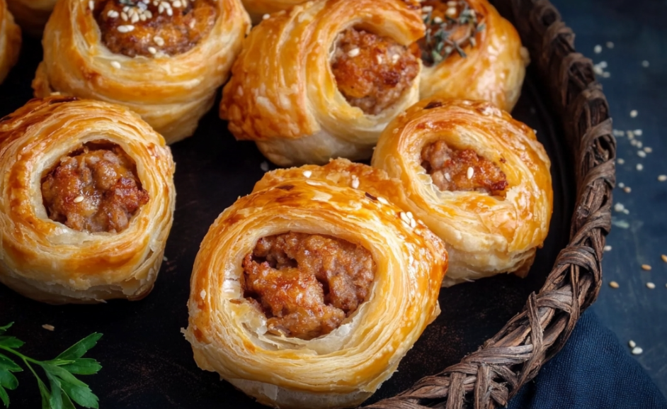 Deliciosos rollitos de salchicha con tocino y hierbas