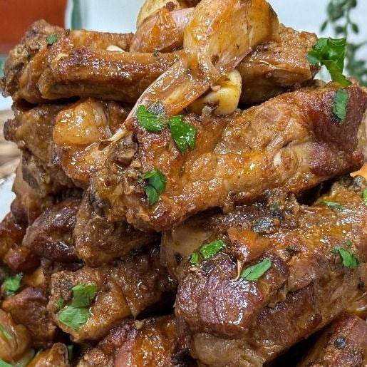 Deliciosas costillas de cerdo al ajillo con un dorado perfecto y un aroma irresistible a ajo y especias.