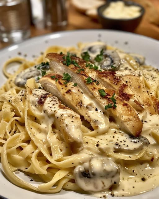 FETTUCCINE CREMOSO CON POLLO Y CHAMPIÑONES‼️✅😋👌🏻