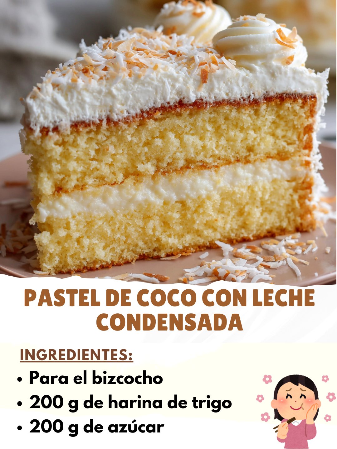 Lo mejor de esta receta es que no necesitas ser un experto en repostería para lograr un resultado espectacular. Con ingredientes sencillos y pasos fáciles de seguir, conseguirás un pastel con un equilibrio perfecto entre dulzura y cremosidad. La leche condensada aporta una humedad irresistible, mientras que la leche de coco y el coco rallado refuerzan ese sabor tropical que tanto gusta.