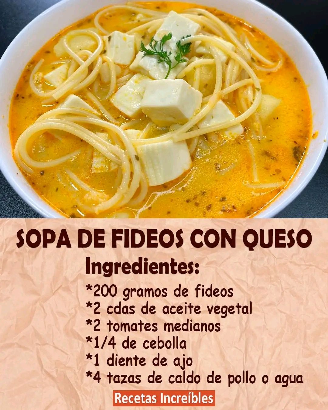 SOPA DE FIDEOS CON QUESO